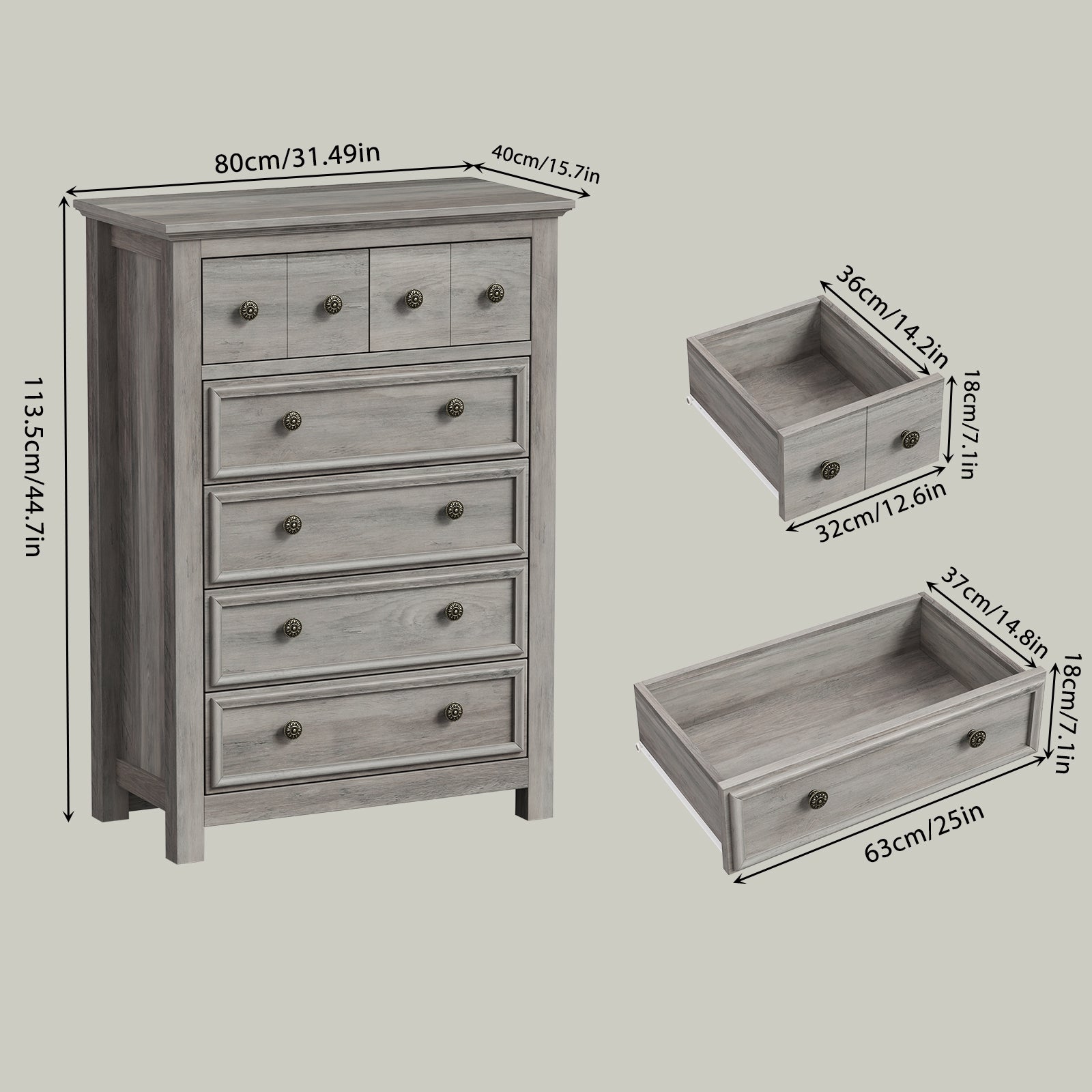 6 Drawer Dresser Dimensions: 31.5"L x 15.7"W x 44.7"H/(80 x 40 x 113.5) cm