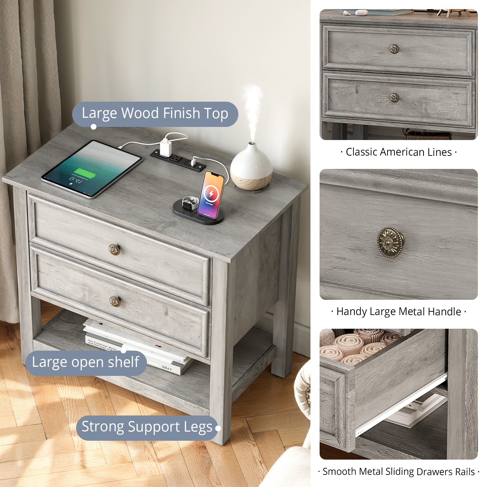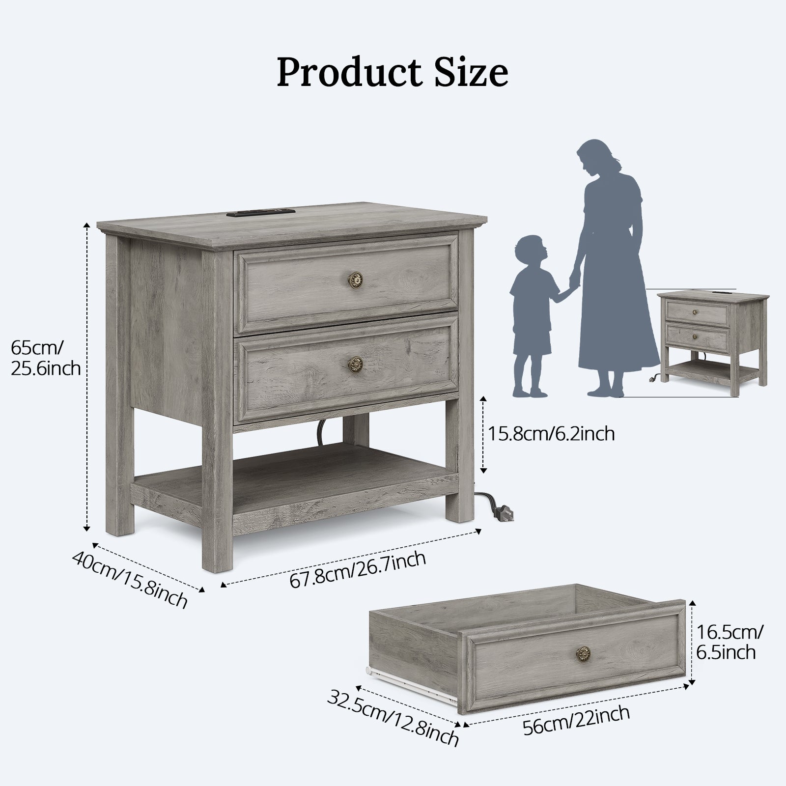 Nightstand Dimensions: 26.7"L x 15.7"W x 25.6"H/(68 x 40 x 65) cm