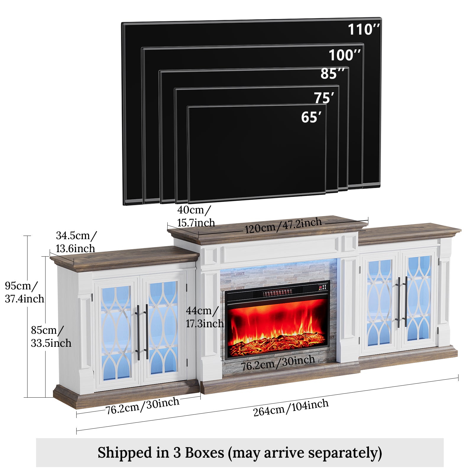 Go to the shopHolliwill 104" TV Stand with 30" Electric Fireplace & LED Lights & Power Outlets, Modern Farmhouse Entertainment Center with Storage Cabinet for Living Room