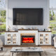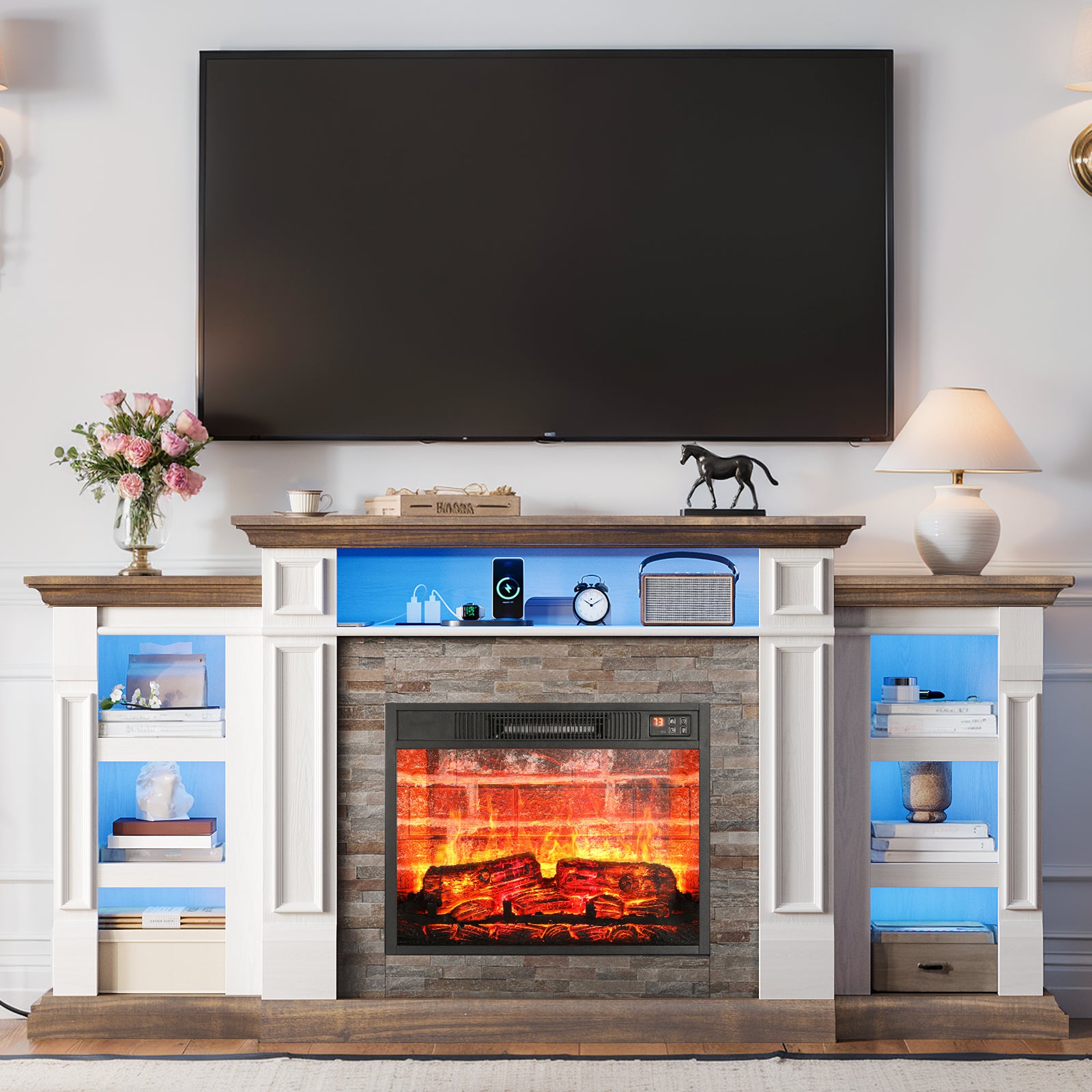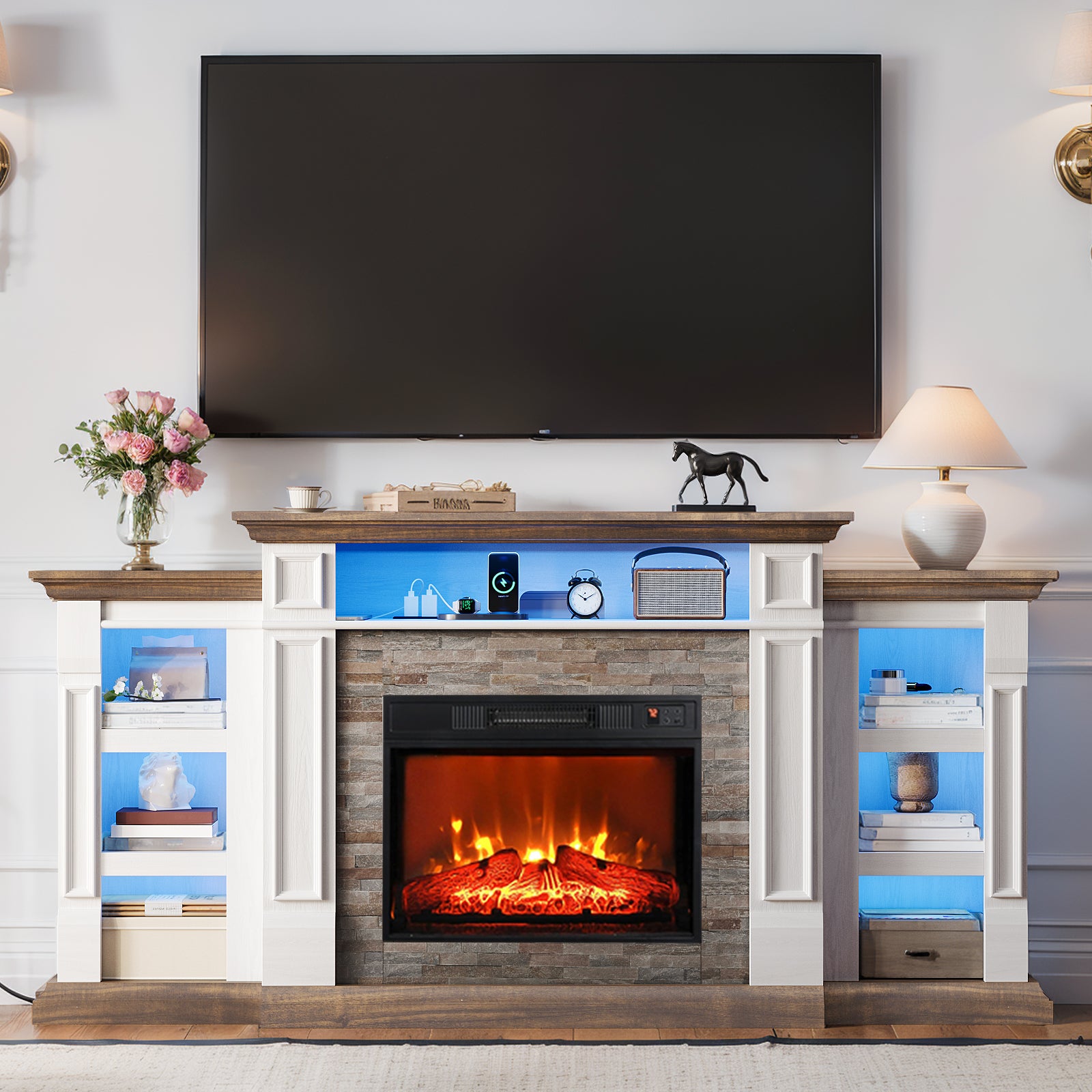 Go to the shopHolliwill 72" TV Stand for TVs up to 80" with Charging Station & LED Light, Electric Fireplace with Mantel, Entertainment Center with 23" Electric Heater