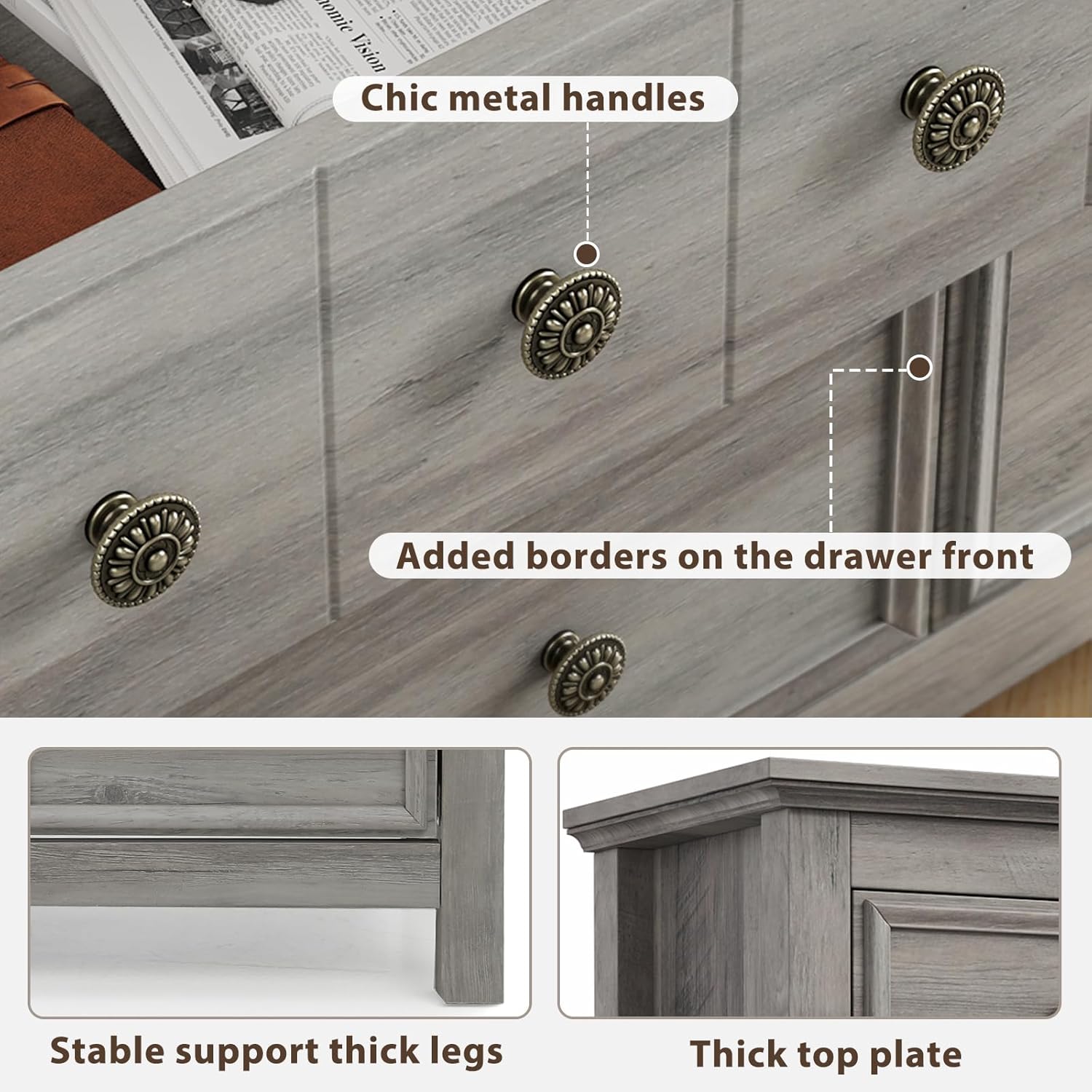 【Modern Farmhouse Design】Featuring sophisticated wood grain finish and elegant pull handles, this long bedroom dresser add an vintage touch to your home. The perfect blend of classic design and modern lifestyle.