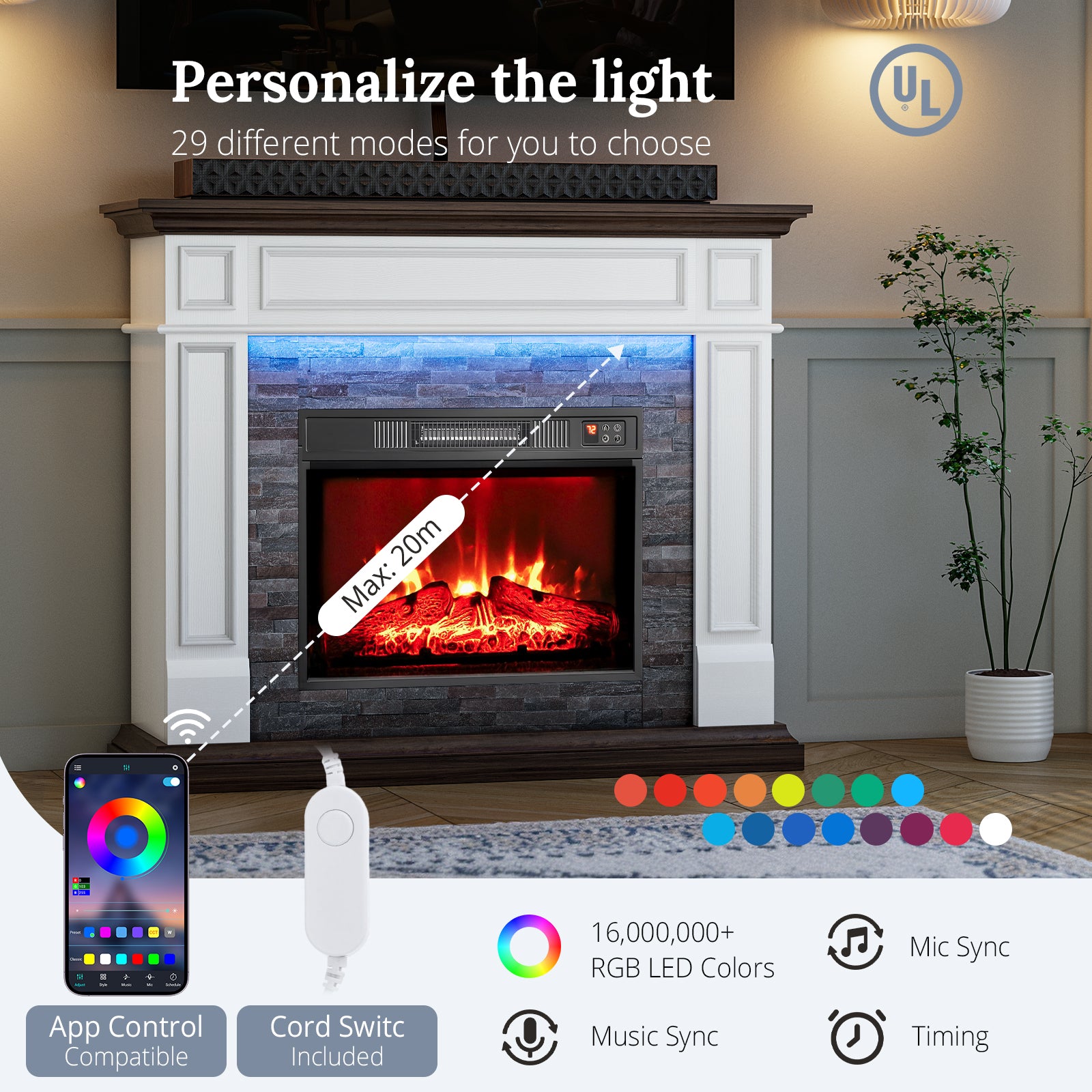Thoughtfully designed with rustic and traditional aesthetics, this mantel is crafted from engineered wood and showcases a stacked stone appearance complemented by elegant edges. This electric fireplace encapsulates both rustic and traditional styles, featuring a surround that mimics the look of stacked stone and intricate edge detailing. When the chill of winter sets in, there's nothing better than unwinding by this fireplace, delivering an efficient 4,760 BTU heat output to keep you warm throughout the season. It effectively heats rooms up to 300 square feet, ensuring a consistently warm and comfortable environment. The fireplace also boasts realistic 3D flame effects with three adjustable brightness settings, enhancing the cozy and inviting atmosphere of your room. For added convenience, the flame, heat, and timer can be controlled using both touch buttons and the included remote control. The configured color-changing LED lights add a festive atmosphere to the room.