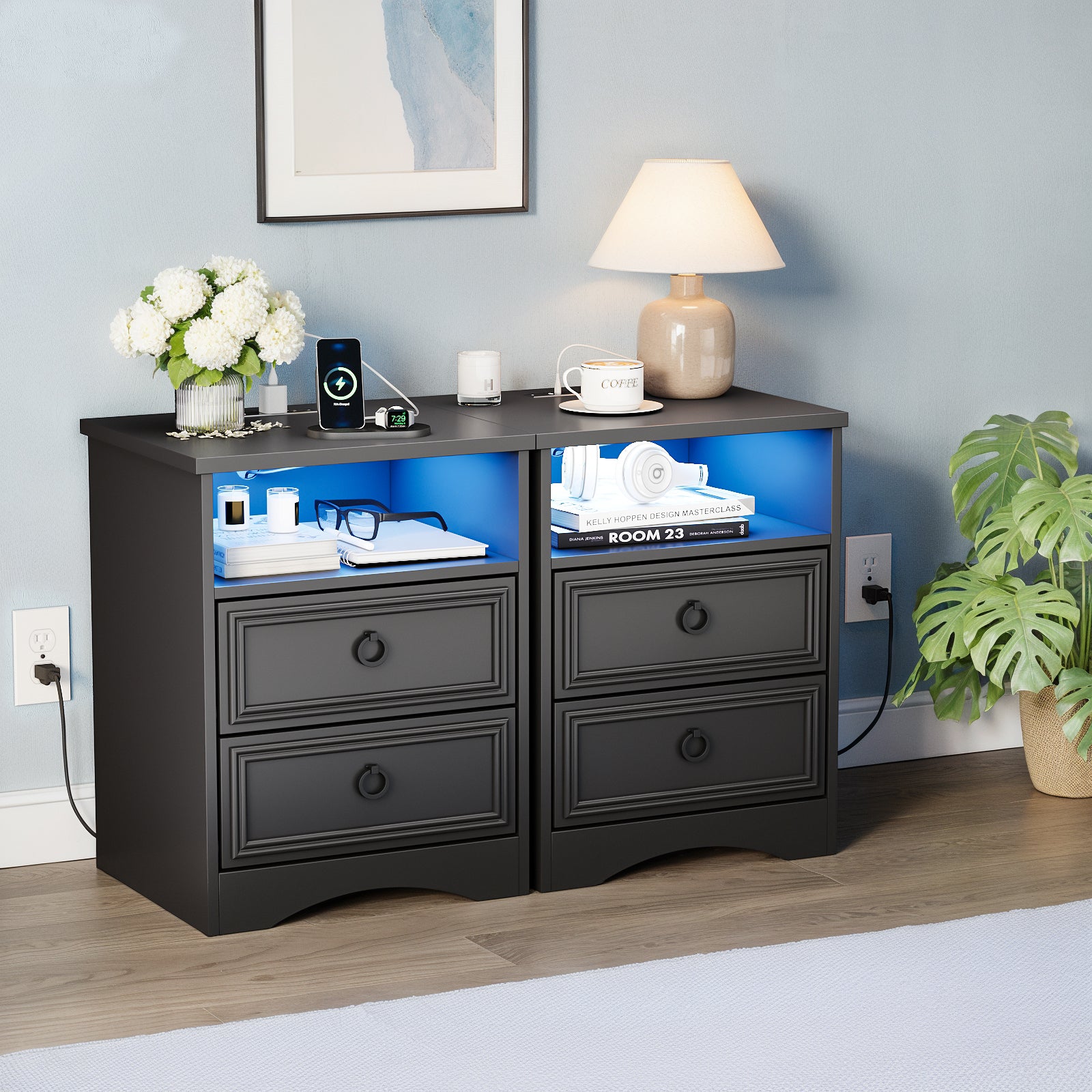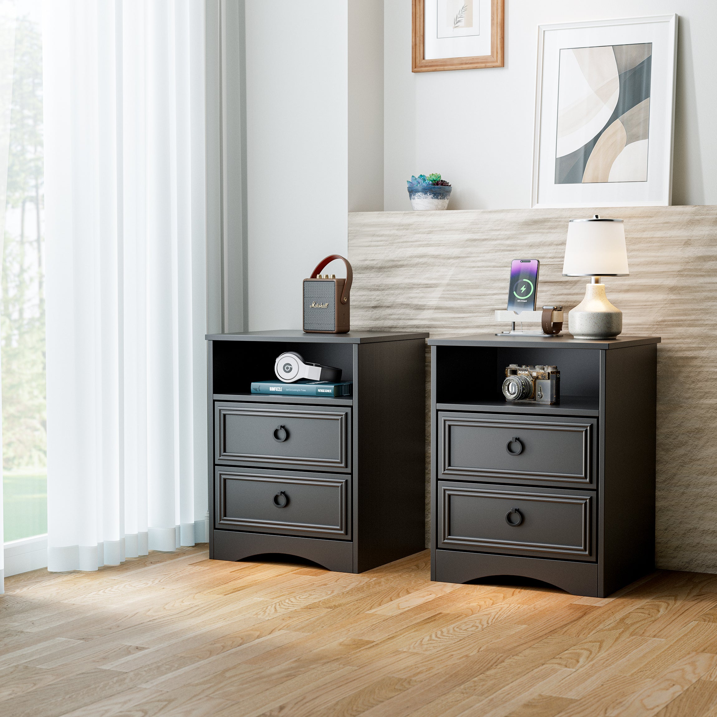 Holliwill Nightstand Set of 2, 2 Drawer Dresser for Bedroom, Bedside Table End Table Side Table for Living Room