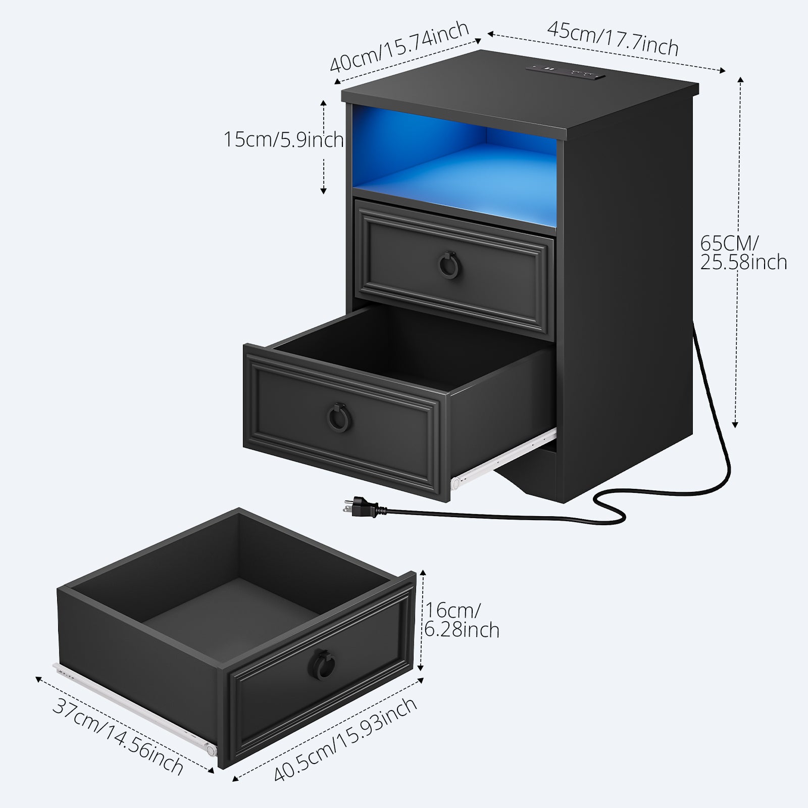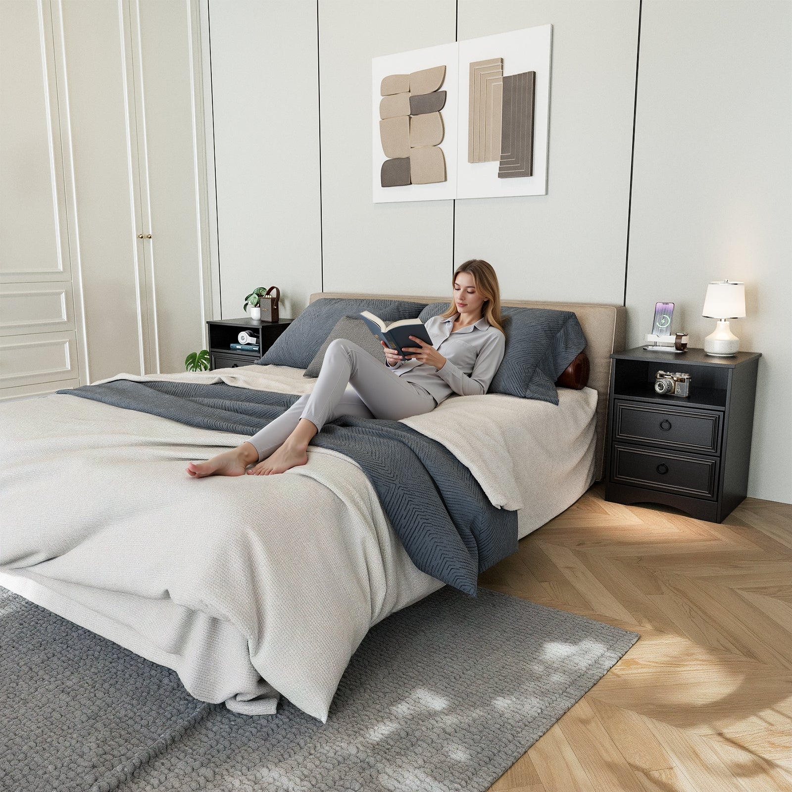 Introducing our stylish and functional farmhouse nightstand, the perfect addition to any bedroom. This Nightstand is elegant in workmanship, added borders on the drawer front, adds a modern feel with a suitably vintage flavor.The elegant design features ample storage space for your bedtime essentials, including two spacious drawers and a open storage space. Nightstands providing plenty of room to store books, magazines, and other personal belongings.Versatile design can be used as a nightstand, end table, side table, or coffee table, making it a great addition to your bedroom, living room, or any other space.