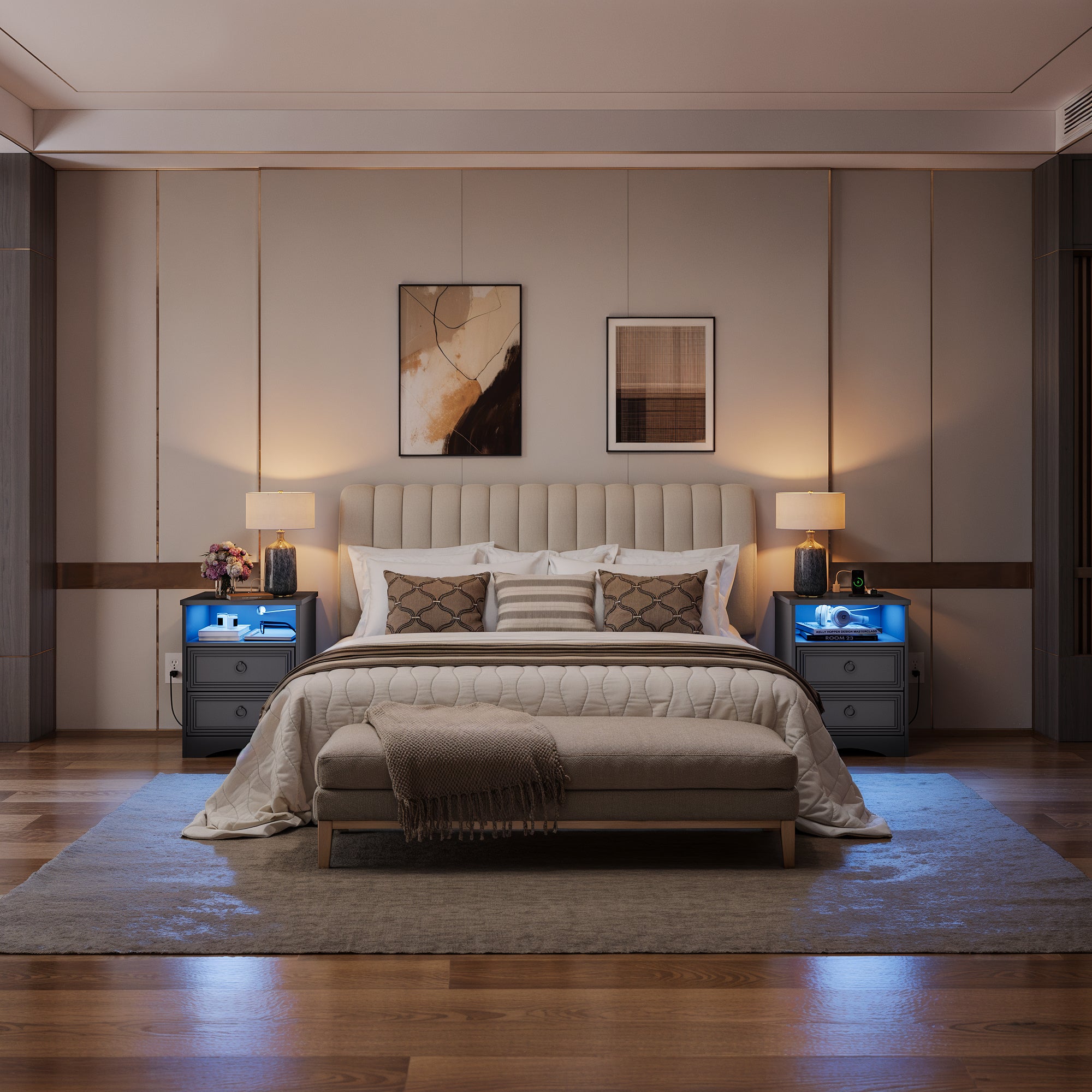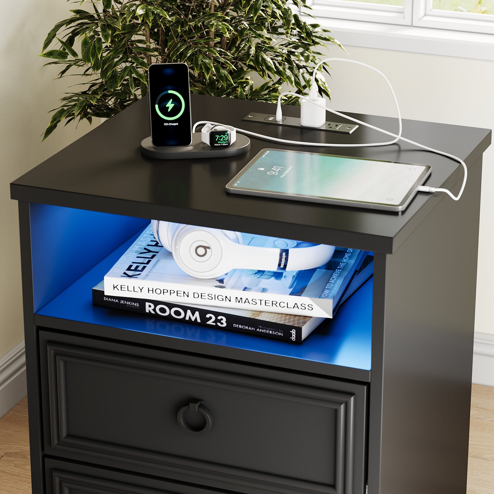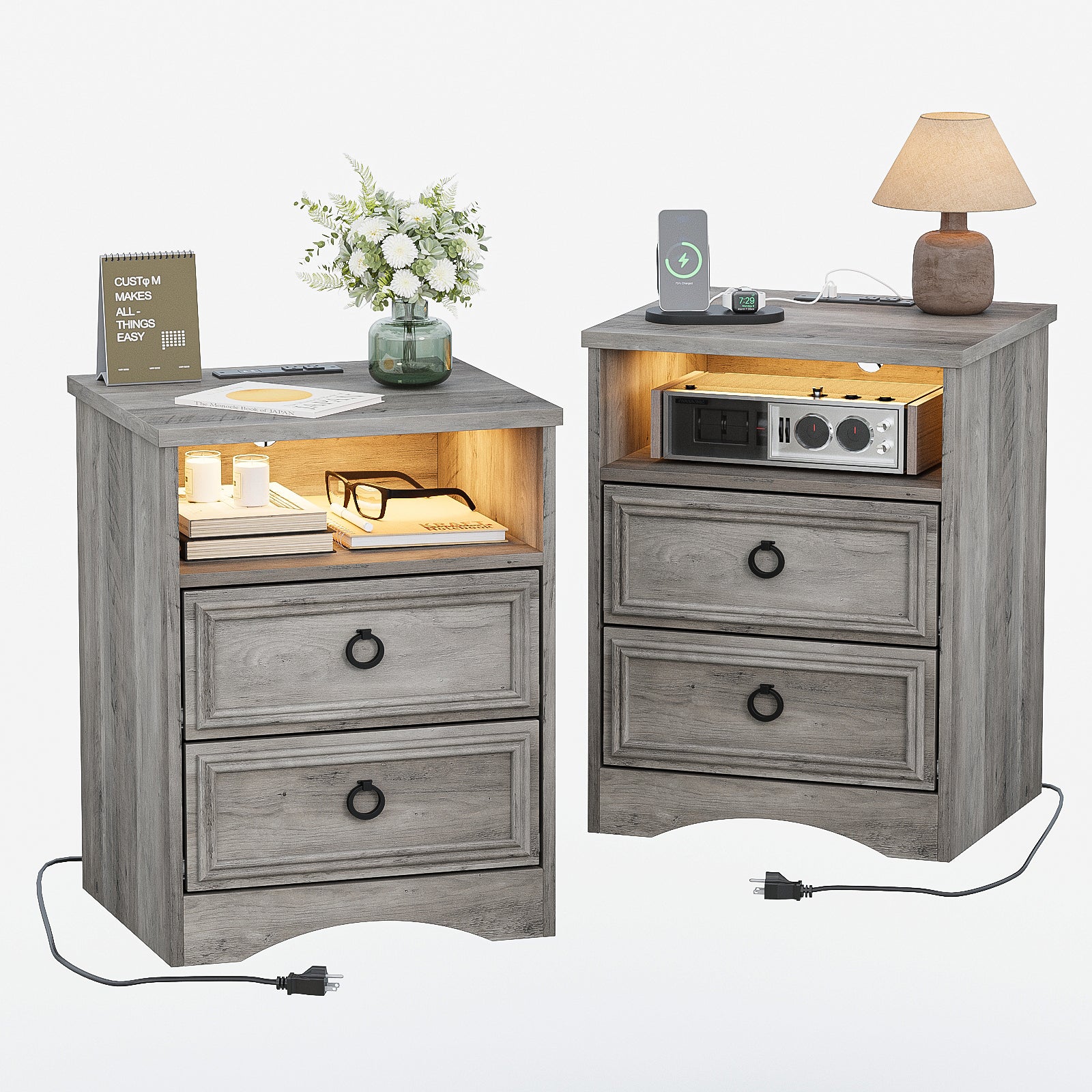 Holliwill Nightstand Set of 2 with Drawers, Modern Farmhouse Bedside Tables for Bedroom, Living Room